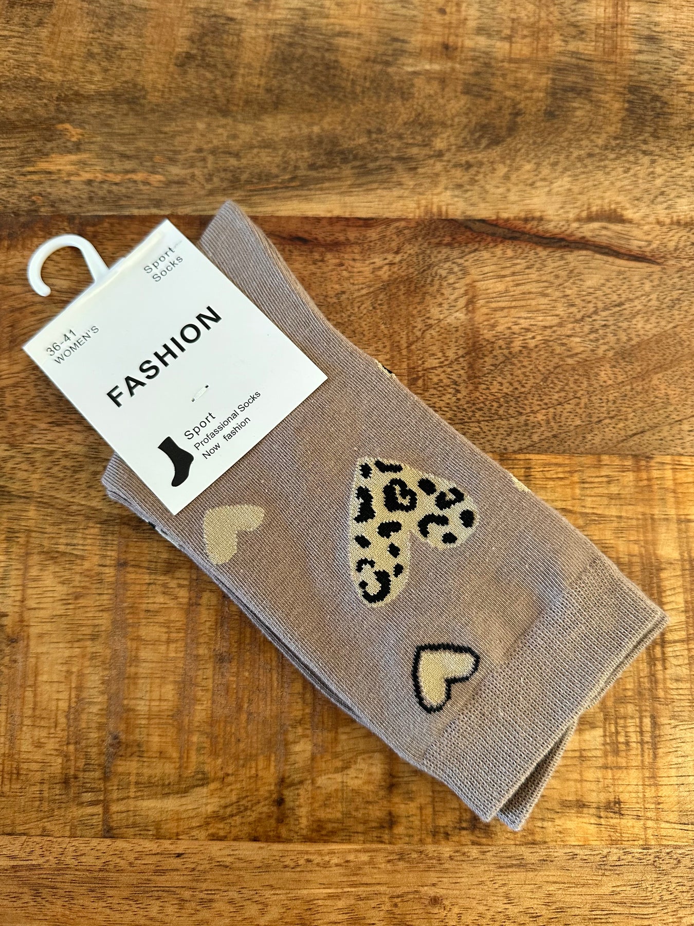 Verleihen Sie Ihrem Alltag mit diesen entzückenden Socken einen Hauch von Fantasie. Hübsche Herzmotive, von denen einige mit einem Leopardenmuster bedruckt sind, was ihnen einen trendigen und zugleich wilden Look verleiht. Die Socken sind aus einer Mischung aus weichen und dehnbaren Materialien gefertigt und bieten optimalen Tragekomfort. Erhältlich in 2 Farben.