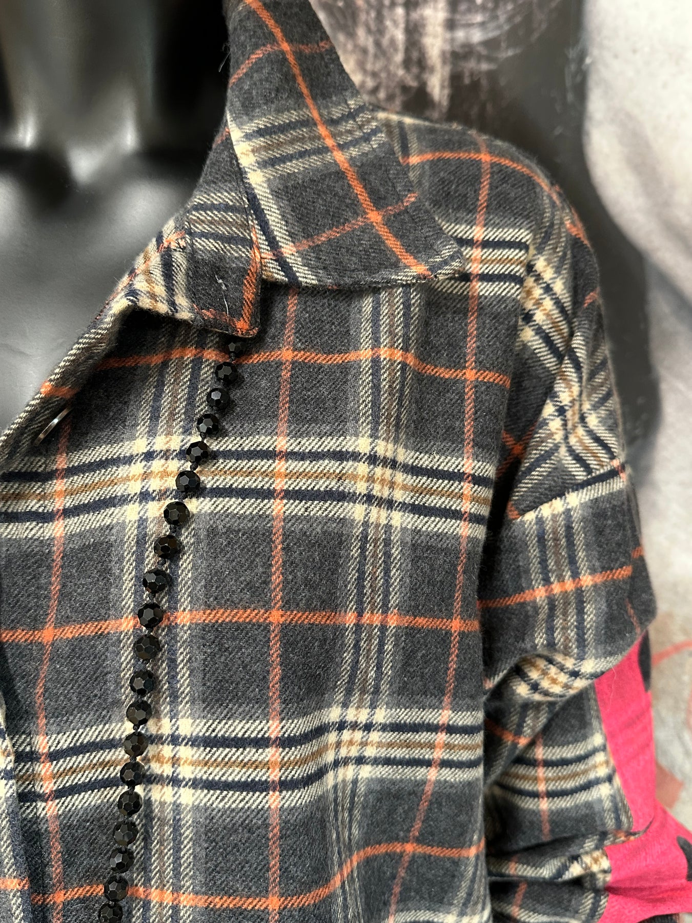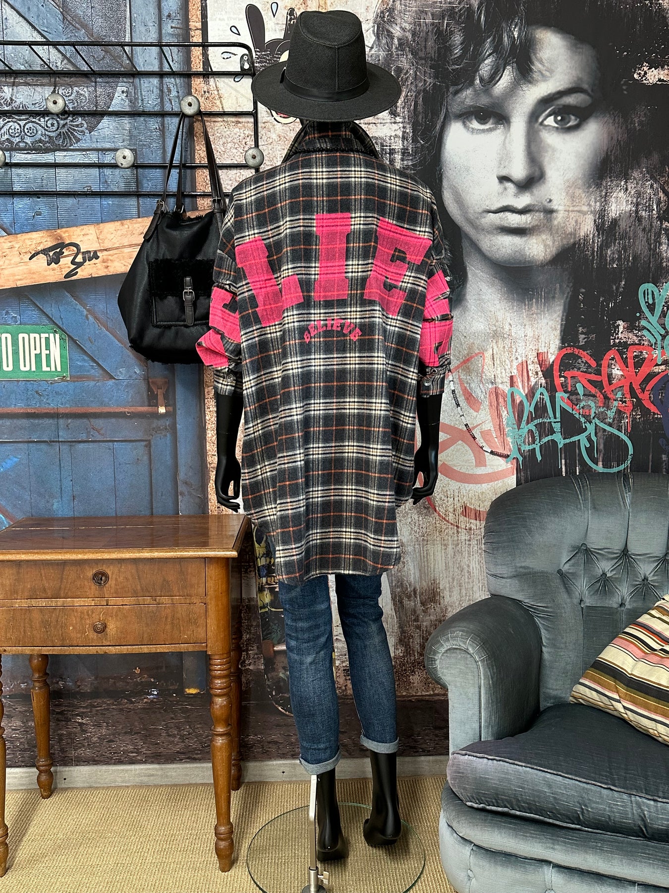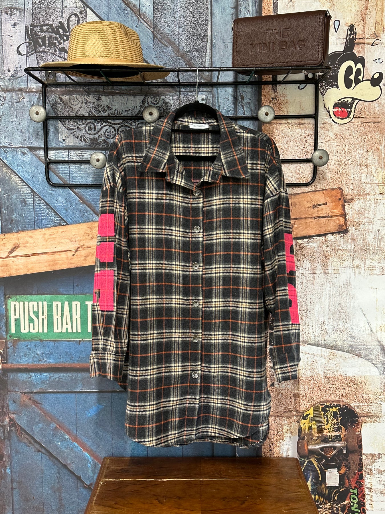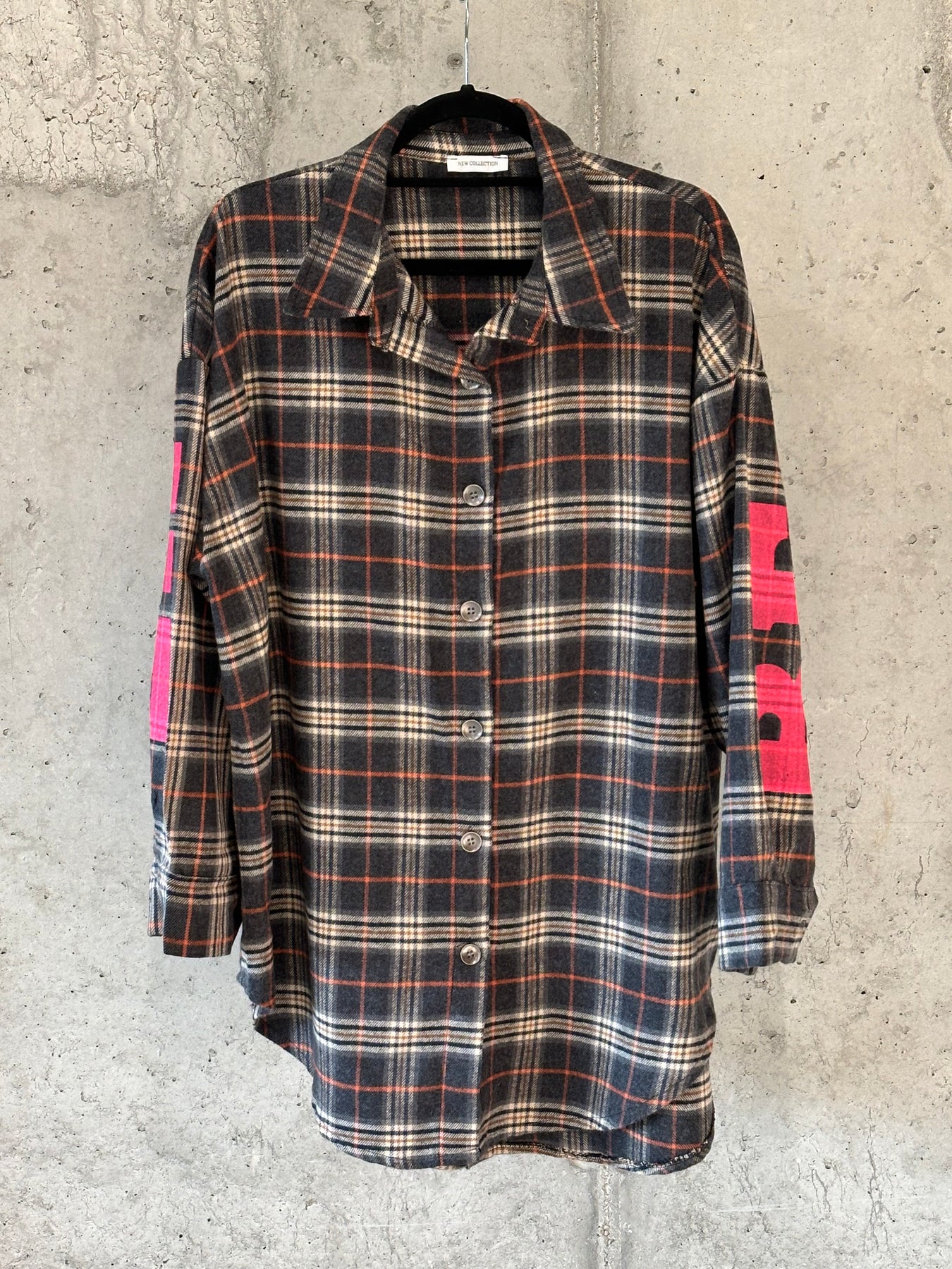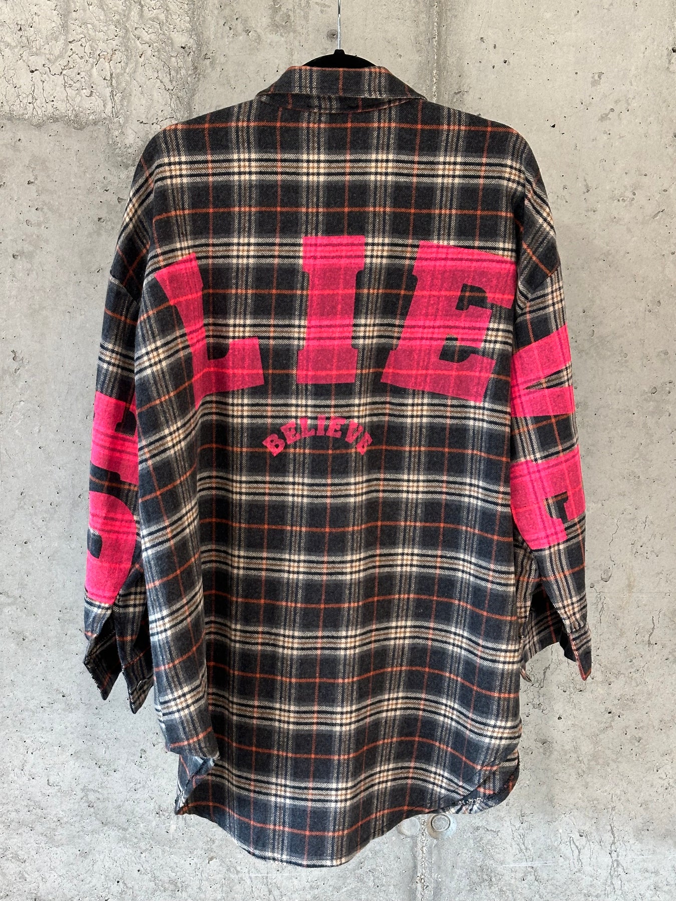 Setzen Sie mit diesem ultraweichen Hemd mit Karomuster einen gewagten und modischen Look um. Über die gesamte Länge geknöpft. Klassischer Kragen. Übergroßer und langer Schnitt. Lange Ärmel mit Knopfverschluss. Erhabenes Karomuster in einer raffinierten Farbmischung ( Anthrazit, Beige, Marineblau und Rost). Der Schriftzug "BELIVE" in Neonpink auf dem Rücken und auf der Rückseite der Ärmel verleiht dem Kleidungsstück einen originellen Touch. Tragen Sie es geschlossen oder im Lagenlook für einen schicken und urbanen Grunge-Stil.