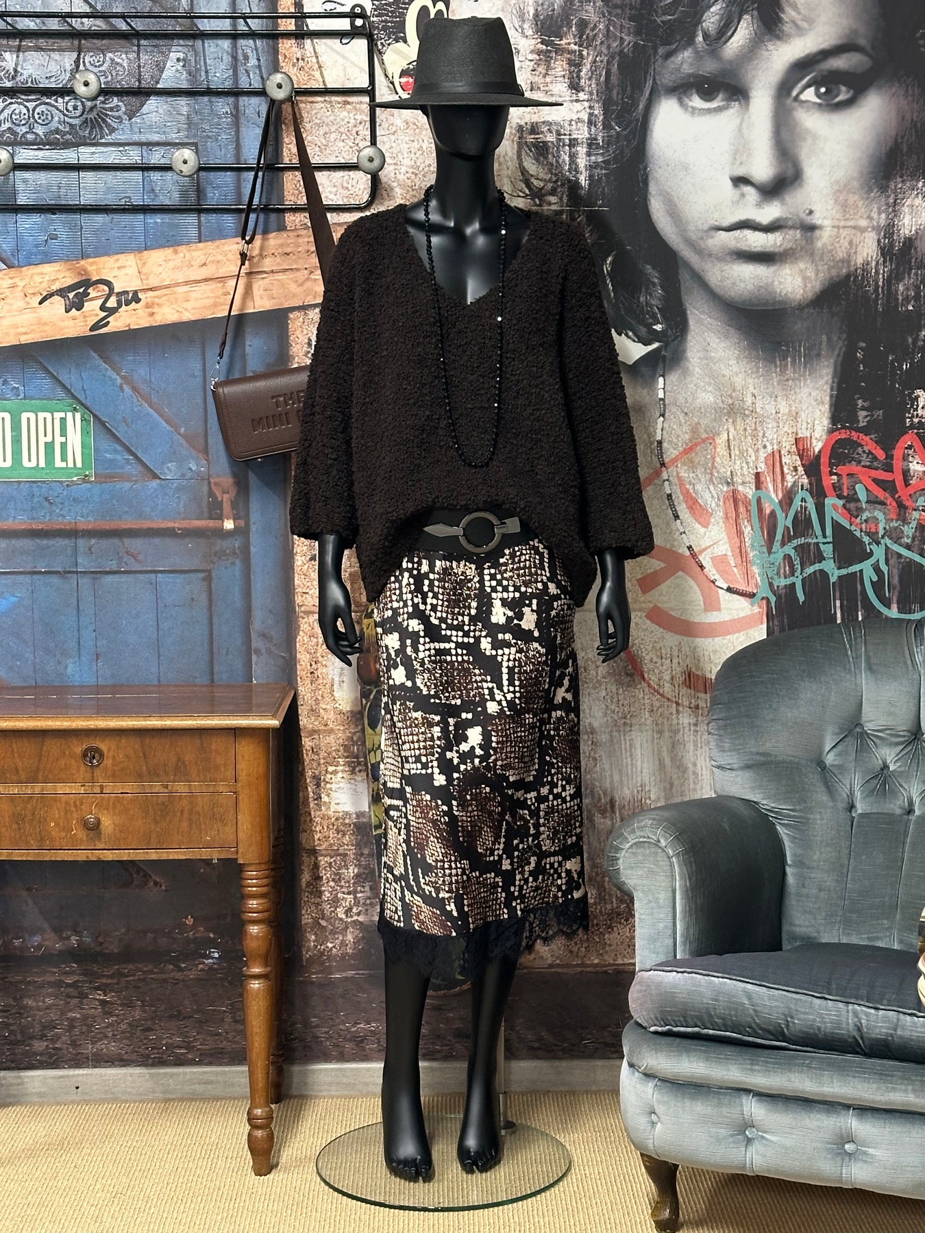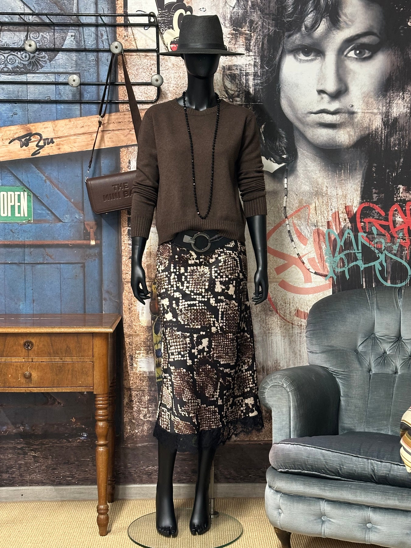 Satinrock aus Spitze mit "Python"-Print in braun, schwarz & champagner (34/38) MADE IN 🇮🇹