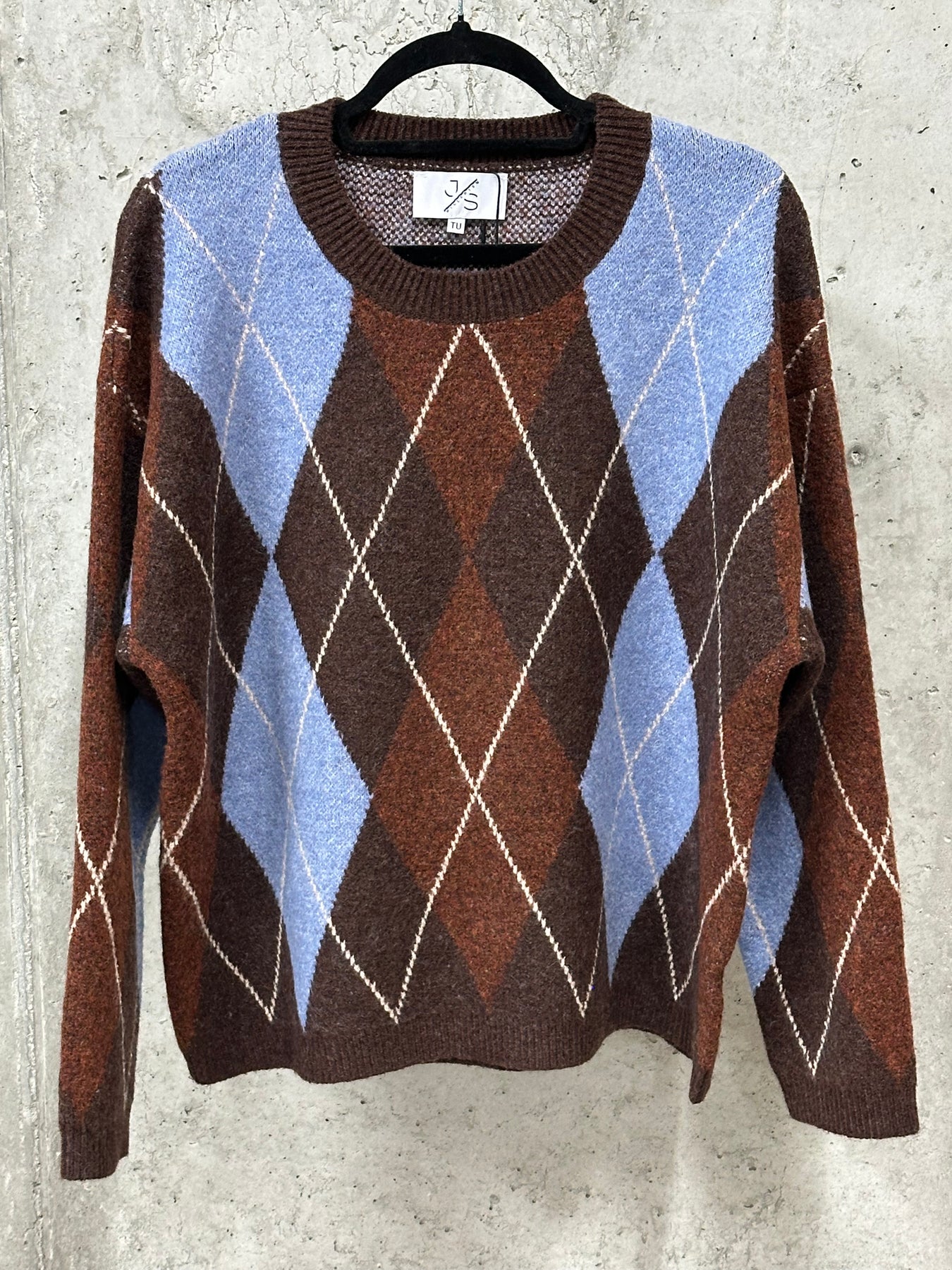 Verleihen Sie Ihrer Garderobe mit diesem wunderschönen Pullover einen Hauch von Weichheit und Eleganz. Weite Passform. Rundhalsausschnitt. Lange Ärmel. Wunderschönes „Argyle”-Muster in Braun-, Rost-, Beige- und Hellblau-Tönen. Schöne Rippstrick-Verzierungen. Superweich und bequem. Ideal für den Alltag, passt er sowohl zu einem lässigen Outfit mit Jeans als auch zu einem schickeren Outfit mit Hose oder Rock.