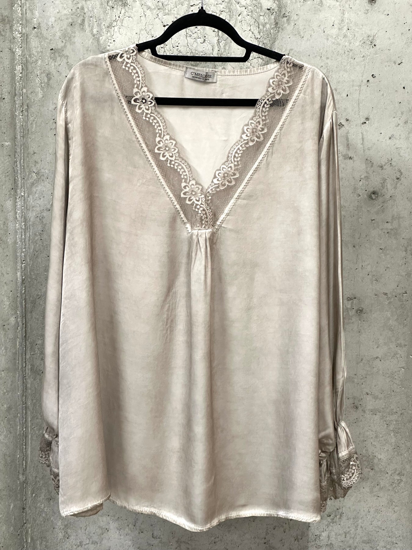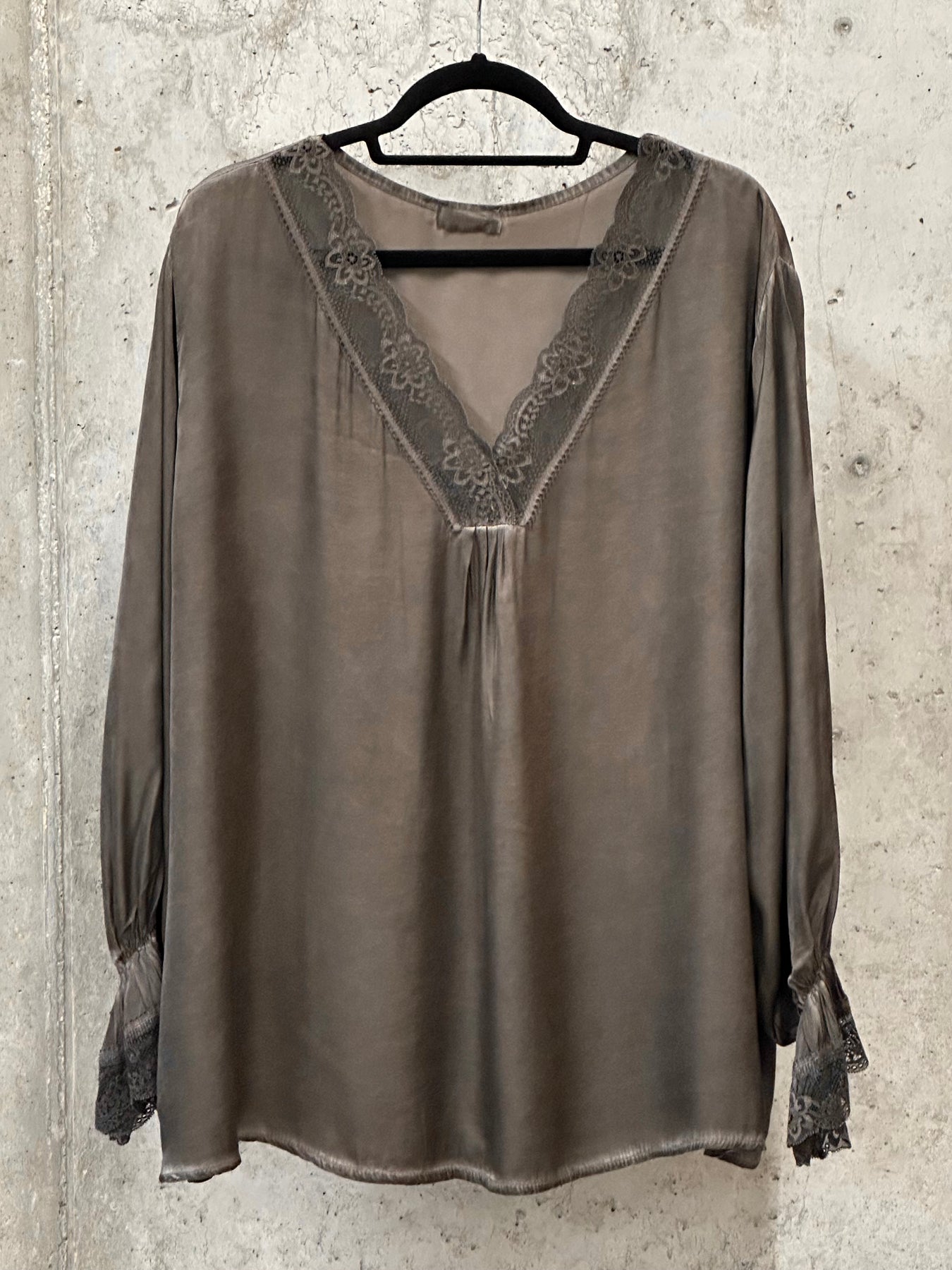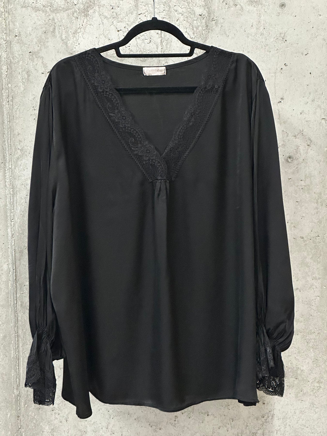 Top mit langen Ärmeln satiniert Viskose & Seide (44/48) MADE IN 🇮🇹