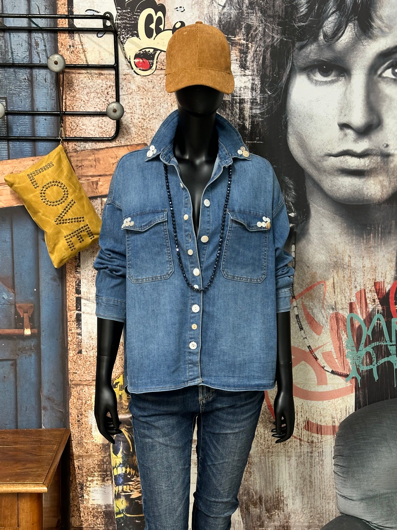 Stretch-Hemd aus verwaschenem Denim mit „Perlmuttknöpfen“ (38/44)