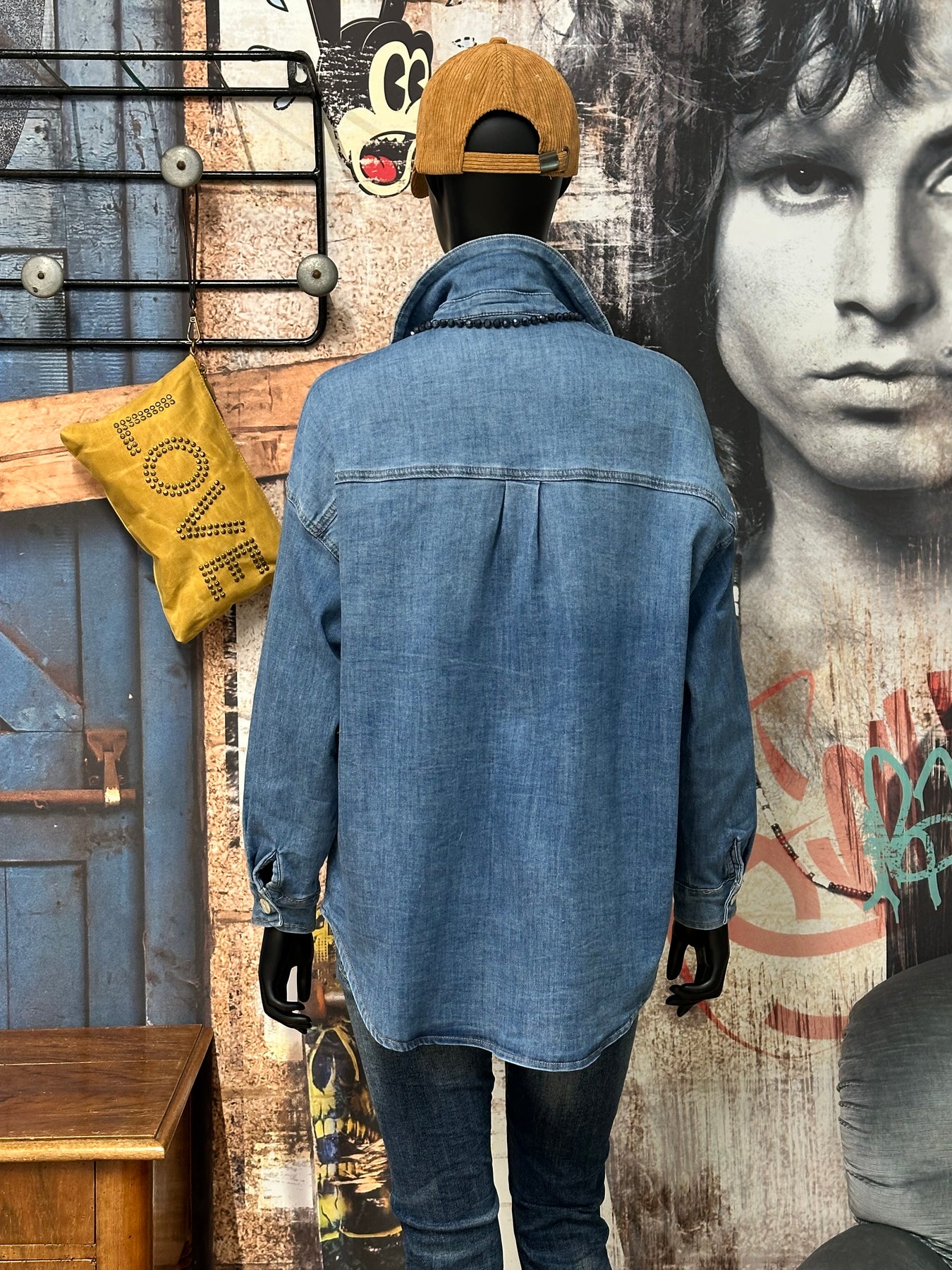 Verleihen Sie Ihrer Garderobe einen Hauch von Pep mit diesem mittelblauen Jeanshemd, das sich durch seine raffinierte Knopfleiste auszeichnet. Es ist aus einem weichen, leichten Stretch-Denim gefertigt und bietet einen makellosen Fall sowie absoluten Tragekomfort den ganzen Tag über.
