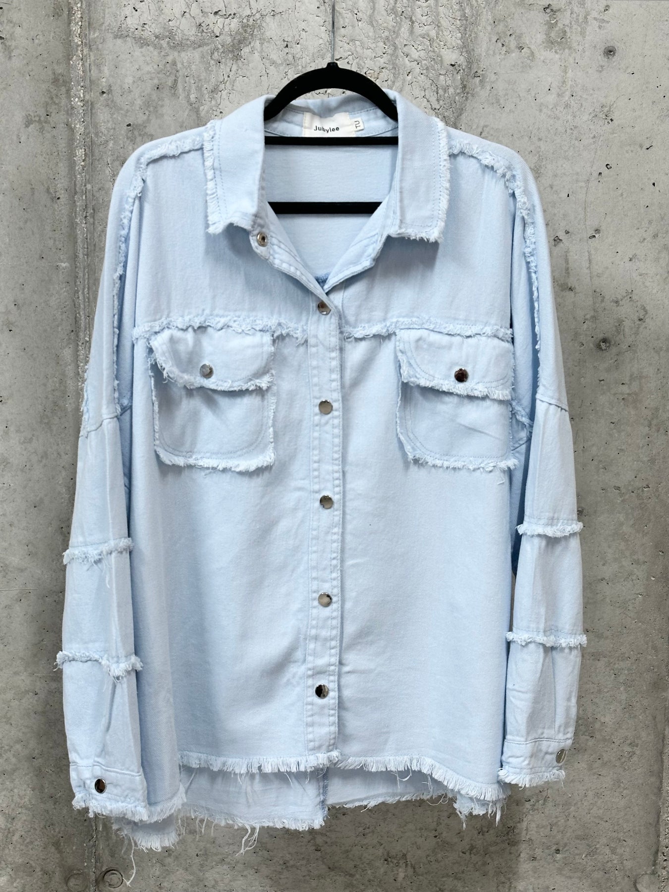 Bringen Sie Ihren Stil mit dieser Hemdjacke im Vintage-Look zum Ausdruck. Als Highlight der Saison kombiniert sie einen rohen Look mit einem ultra-trendigen Oversize-Schnitt.