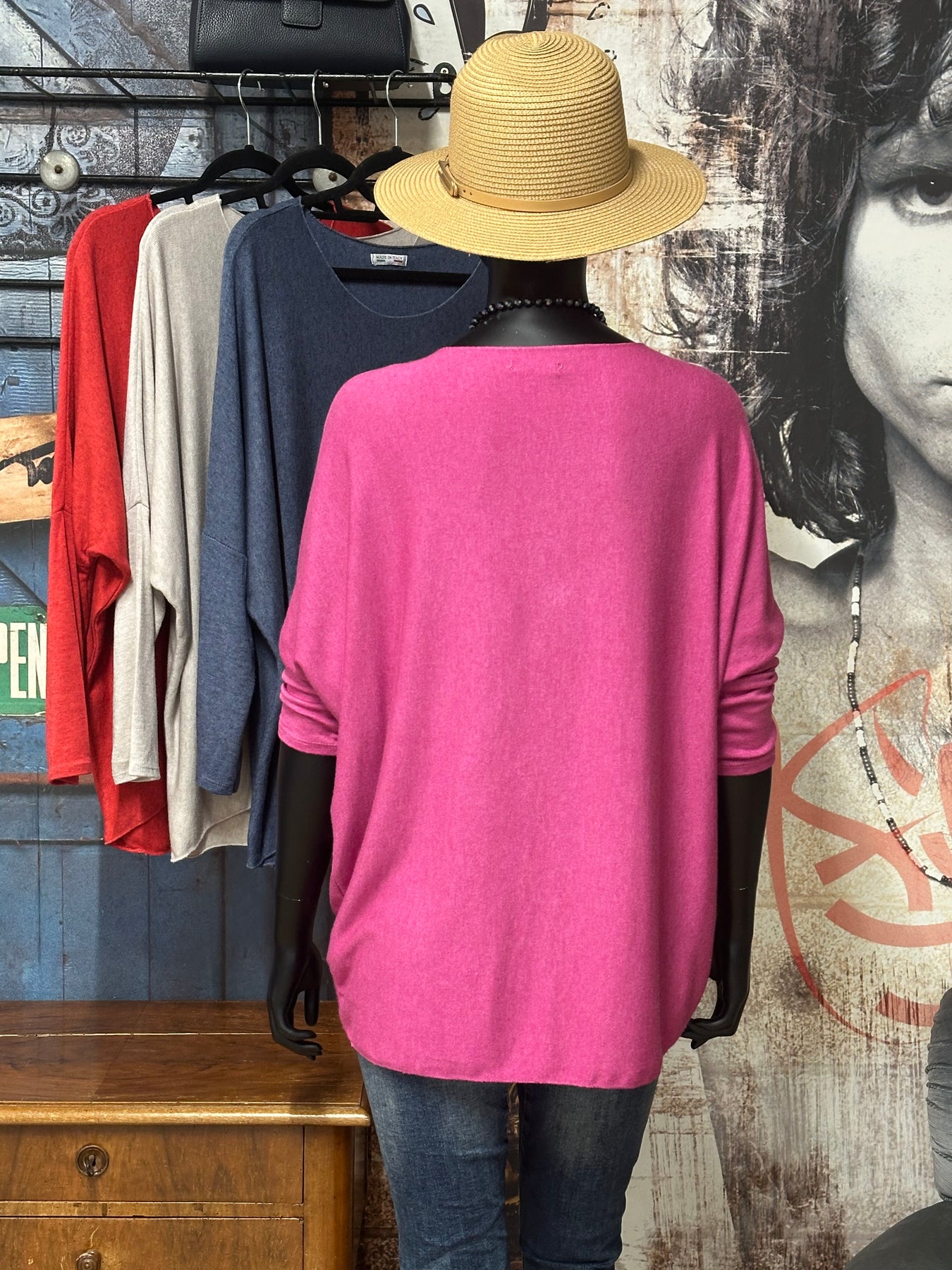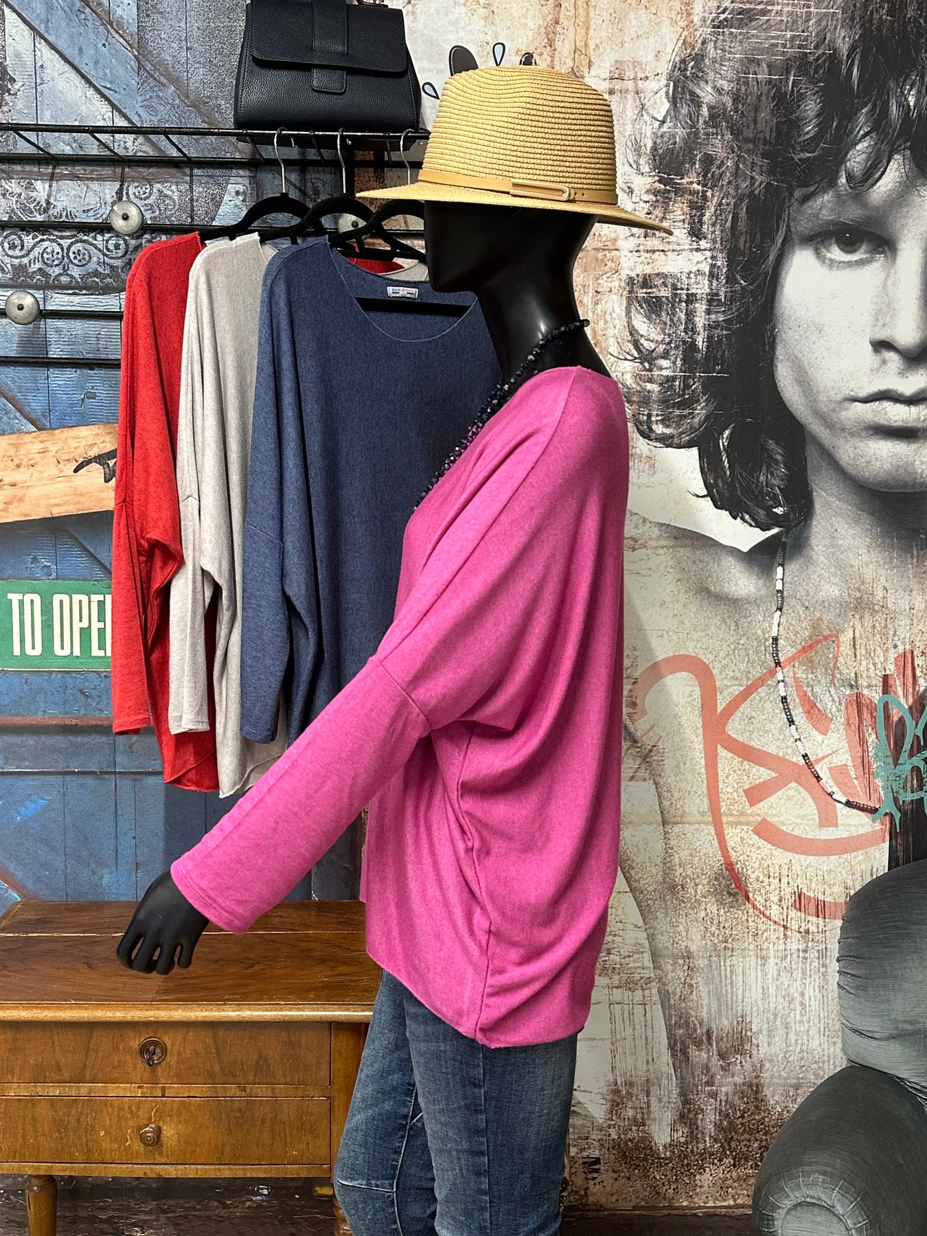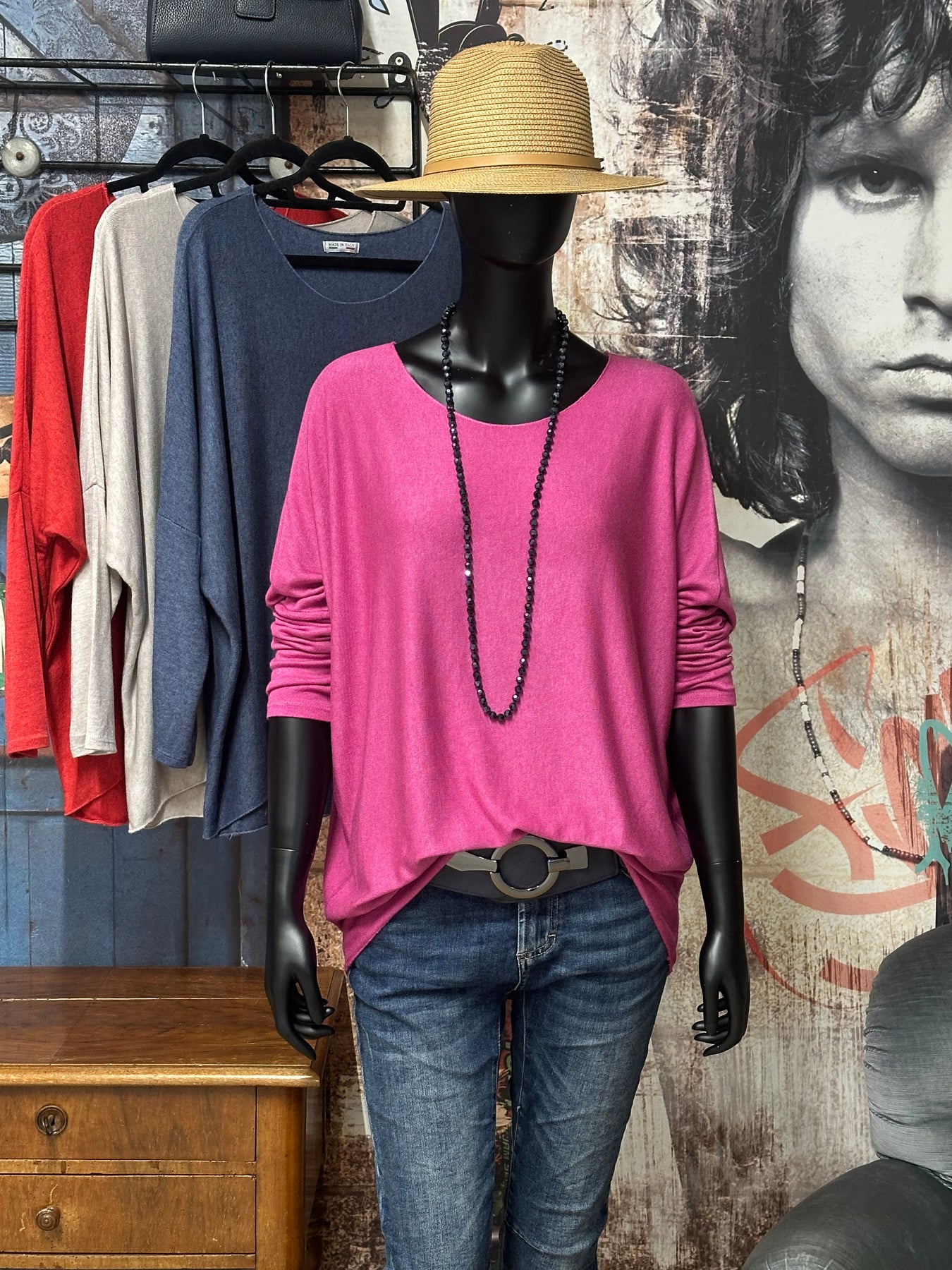 Dieser Pullover ist ein unverzichtbares Stück in Ihrer Garderobe. Lockerer Schnitt, an den Hüften enger und hinten länger. Breiter Rundhalsausschnitt. Ärmel mit Fledermausform. Ultrafließend und weich. Einfach zu kombinieren mit einer Jeans für einen lässigen Look, mit einer Straßenhose oder einem Rock für ein formelleres Outfit.