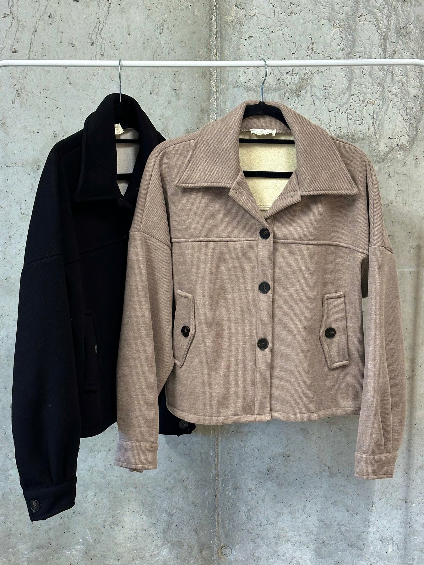 Mit dieser kurzen Jacke im Overshirt-Stil aus feinem Rippstrick erzielen Sie einen lässigen und gepflegten Look. Kurzer, gerader und moderner Schnitt. Großer klassischer Kragen. Knopfverschluss vorne und an den Ärmeln. Die Innenseite ist unglaublich weich. Eine aufgesetzte Tasche auf jeder Seite. Perfekt zum Kombinieren Ihrer Outfits für die Übergangszeit.